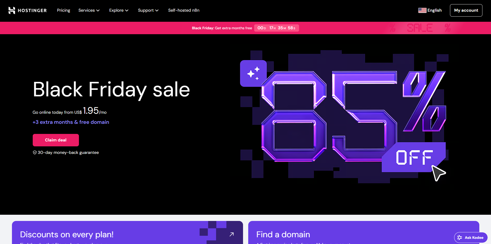 Hostinger Black Friday Sale 2025 [95% OFF + Free Domain]